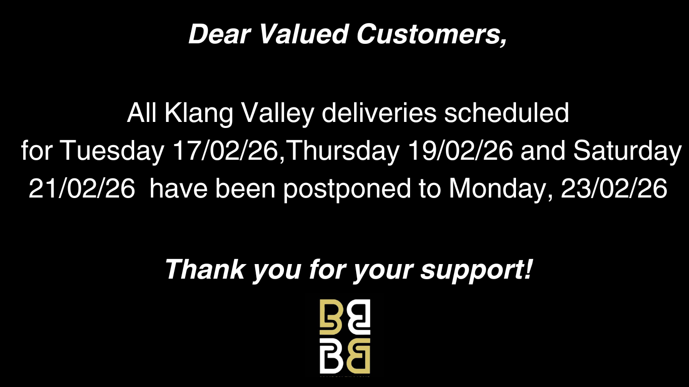 1) Delivery within Klang Valley will be completed on Tuesdays, Thursdays, and Saturdays. Delivery fee is RM14 and FREE for orders over RM210.